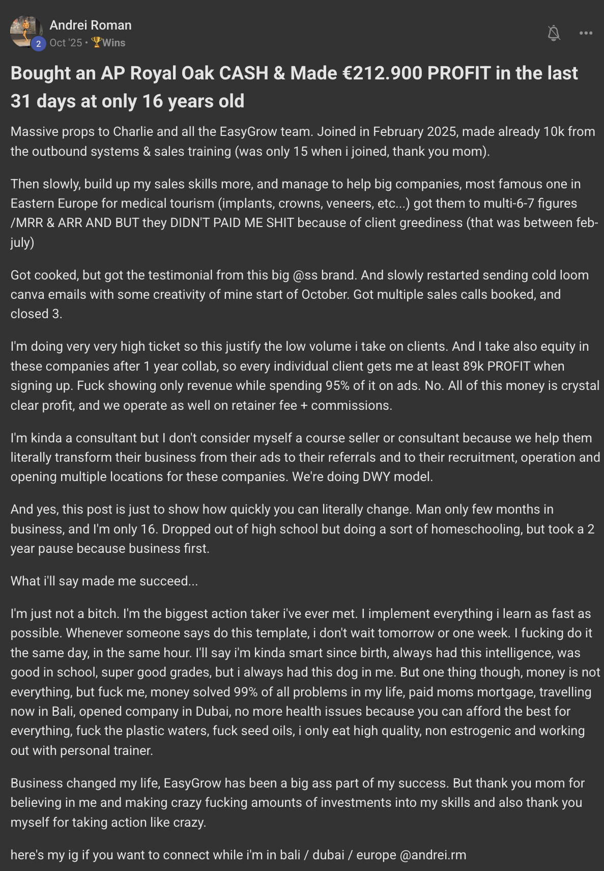 Update: Sold his agency for multi 7-Figures